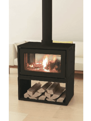 Taurus P3F Double Sided Log Holder Air wash for clean glass. Secondary combustion for greater efficiency and heat output. Convection unit. Vermiculate Firebricks/ Steel top baffle.