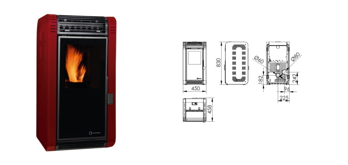 This pellet stove is Ecoforest’s best-selling model. Its power adapts to the vast majority of homes. It is also an airtight stove: ideal for installations in passive houses and homes in rural areas. This freestanding model has a power output of 7,5kw
