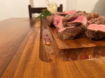 Our fillet block is a the perfect board to serve long juicy pieces of meat. It has an extra large groove like the Braai Block, but they are narrower so that you can place the boards down the middle of the table.