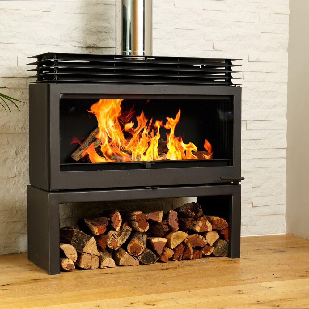 The Hydro fire Free-Standing Cast-Iron Fireplace collection boasts its flagship model, the L11 Vulcan, renowned for its impressive size and captivating presence in any home.