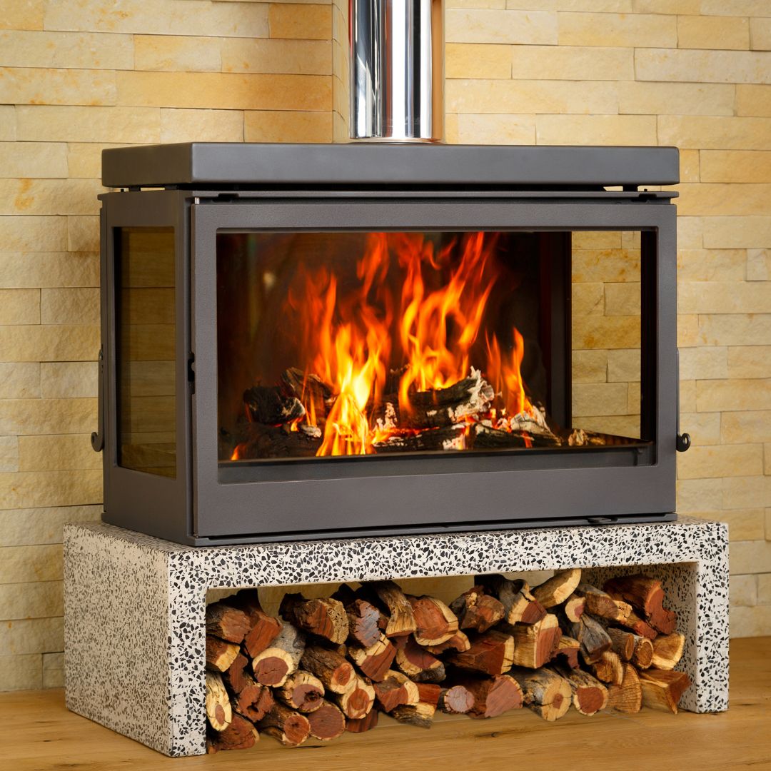 The fireplace is comfortable loading 700mm logs, which also saves you the trouble of chopping extra wood. Aesthetically, the Titan FS is the ideal center piece, thanks to the thick-cast iron material and impressive 820 mm wide glass in front and side glass panels revealing a crystal-clear view of the burning fire. The custom-made Canadian Top adds to the sleek design. What better way to stay cozy than to enjoy the warmth emitting from this showstopping piece?