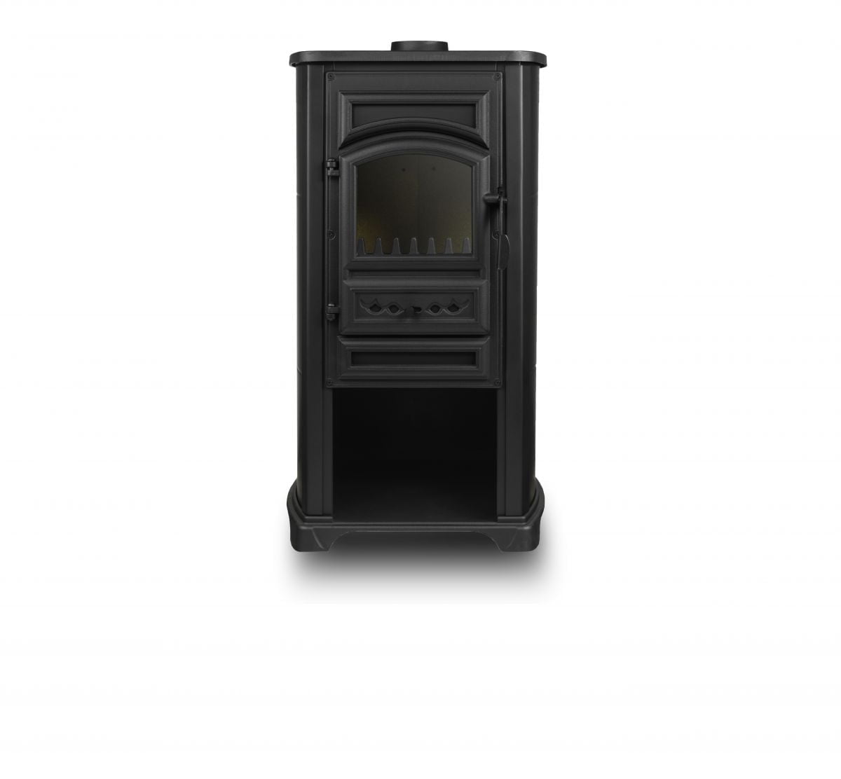 NORDFLAM MERIDO is a fireplace stove made of steel and cast iron elements (upper cover, upper door, lower door and grate). The furnace has secondary and primary air regulation. The furnace chamber is lined with fireclay and the upper door is equipped with a glass pane.